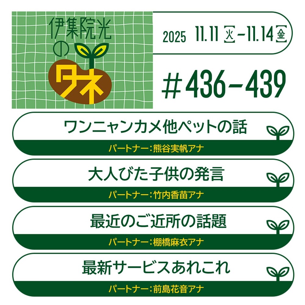 第440回~第443回 2025年11月18日~11月21日放送『06.勘違いとか思い込みとか』『149.好きな手触り』『148.閉じ込められた経験』『126.こんな夢を見た』