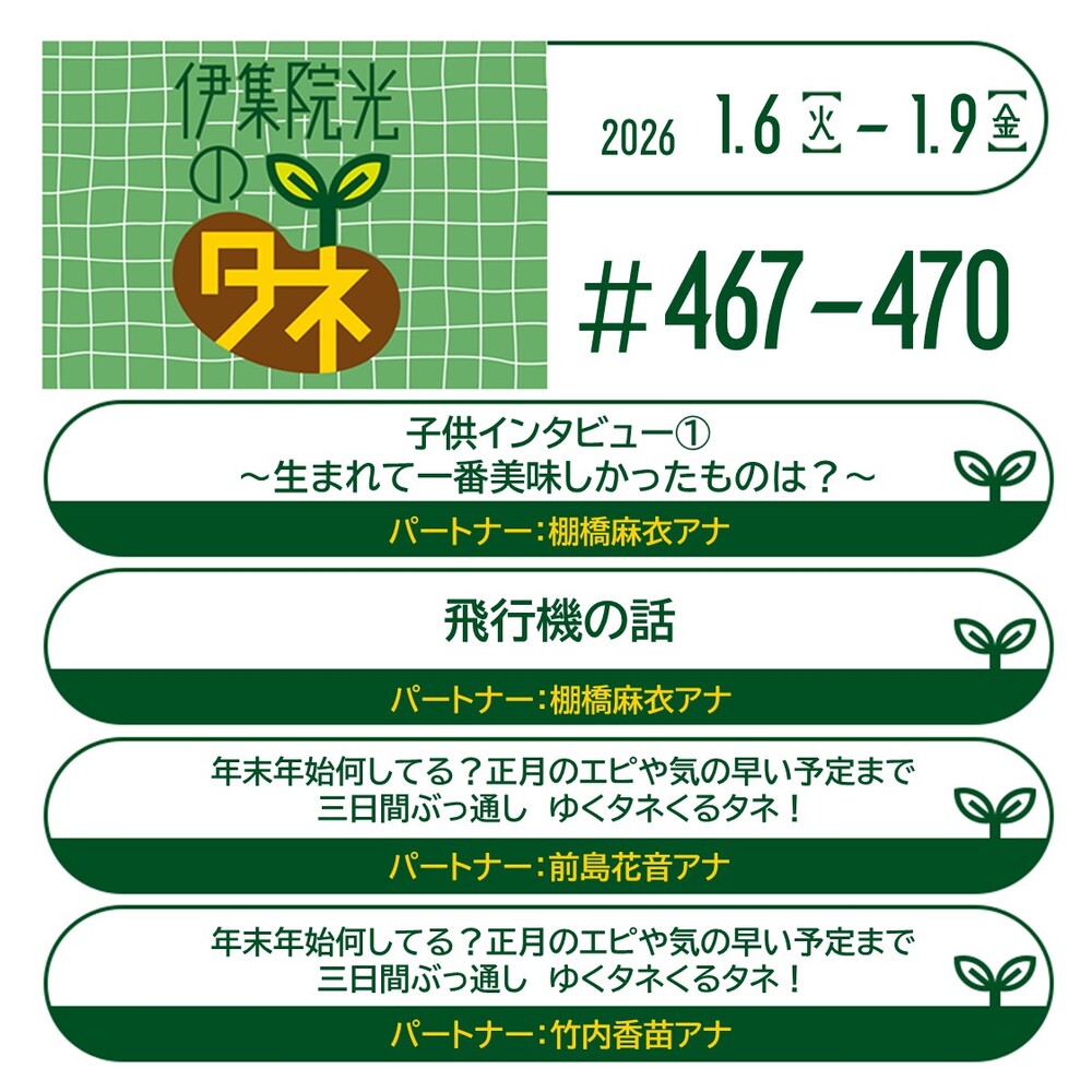 第471回~第474回 2026年1月13日~2026年1月16日放送『33.冷蔵庫に入ってるもの』『69.試験・受験の話』『96.方言あれこれ・方辞苑』『146.雪やこんこ』