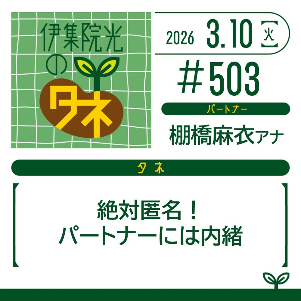 第503回 2026年3月10日放送『71.絶対匿名!パートナーには内緒』