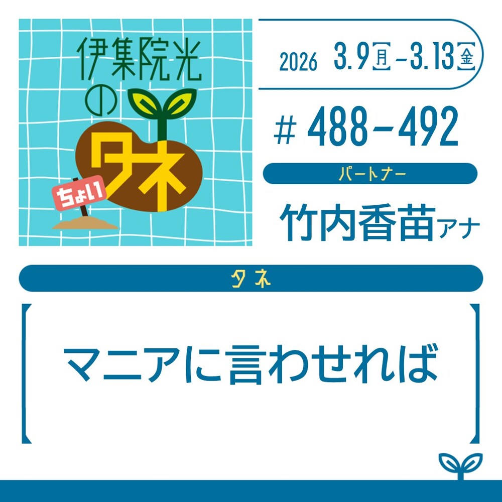 第488回~第492回 2026年3月9日~3月13日放送『37.マニアに言わせれば』
