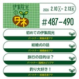 第487回~第490回 2026年2月10日~2026年2月13日放送『115.初めての伊集院光』『77.結婚式の話』『26.旅行の目的は?』『168.釣り大好き!』